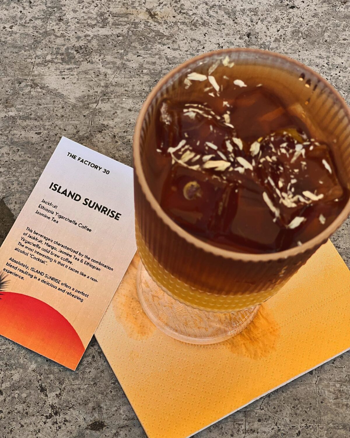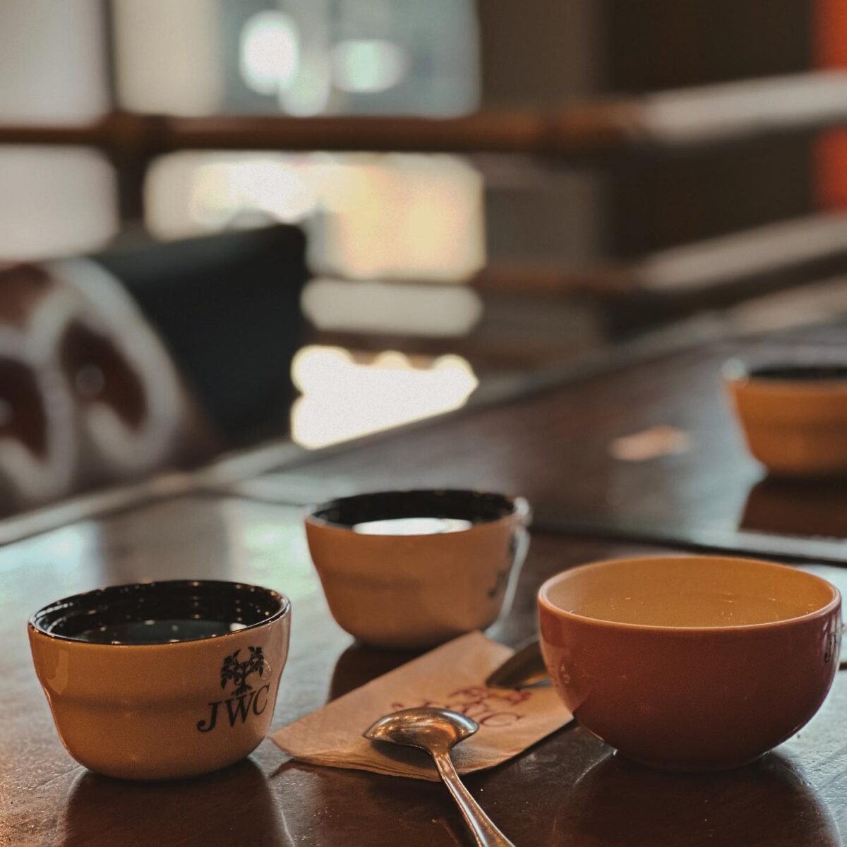 The atmosphere of Just Want Coffee The standout is the Factory 30. Rough brick walls, a unique mix of padded wooden and metal furniture, and a high ceiling adorned with corrugated zinc, warm lightbulbs, and coffee bean gunney sacks suspended from the rafters all contribute to the space’s laid-back, vintage industrial feel. The predominant colors are beige, red, yellow, black, gray, and gold. There are two levels of seats in this large room; the lower level is more private and is more popular due to its perspective of the entire café.