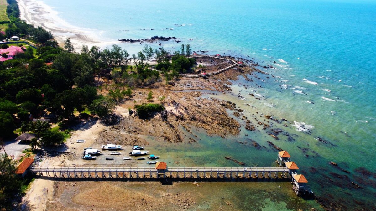 Crashing waves meet rugged rocks while a nearby lighthouse adds a dramatic silhouette to the background. Tanjung Balau feels wild and untouched, perfect for bold edits wide landscape shots, or reels that tell a story of coastal freedom.