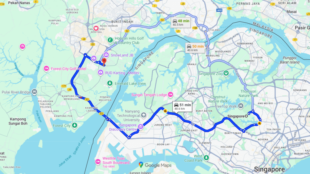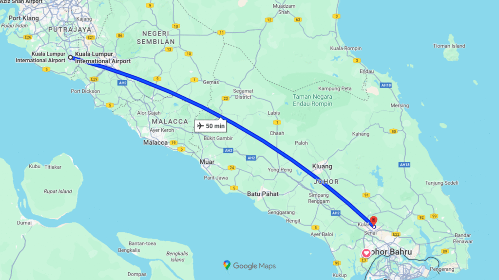 To fly to Johor Bahru, book a flight from Kuala Lumpur (KUL) to Senai International Airport (JHB). Several airlines, including AirAsia, offer daily direct flights that take about one hour.