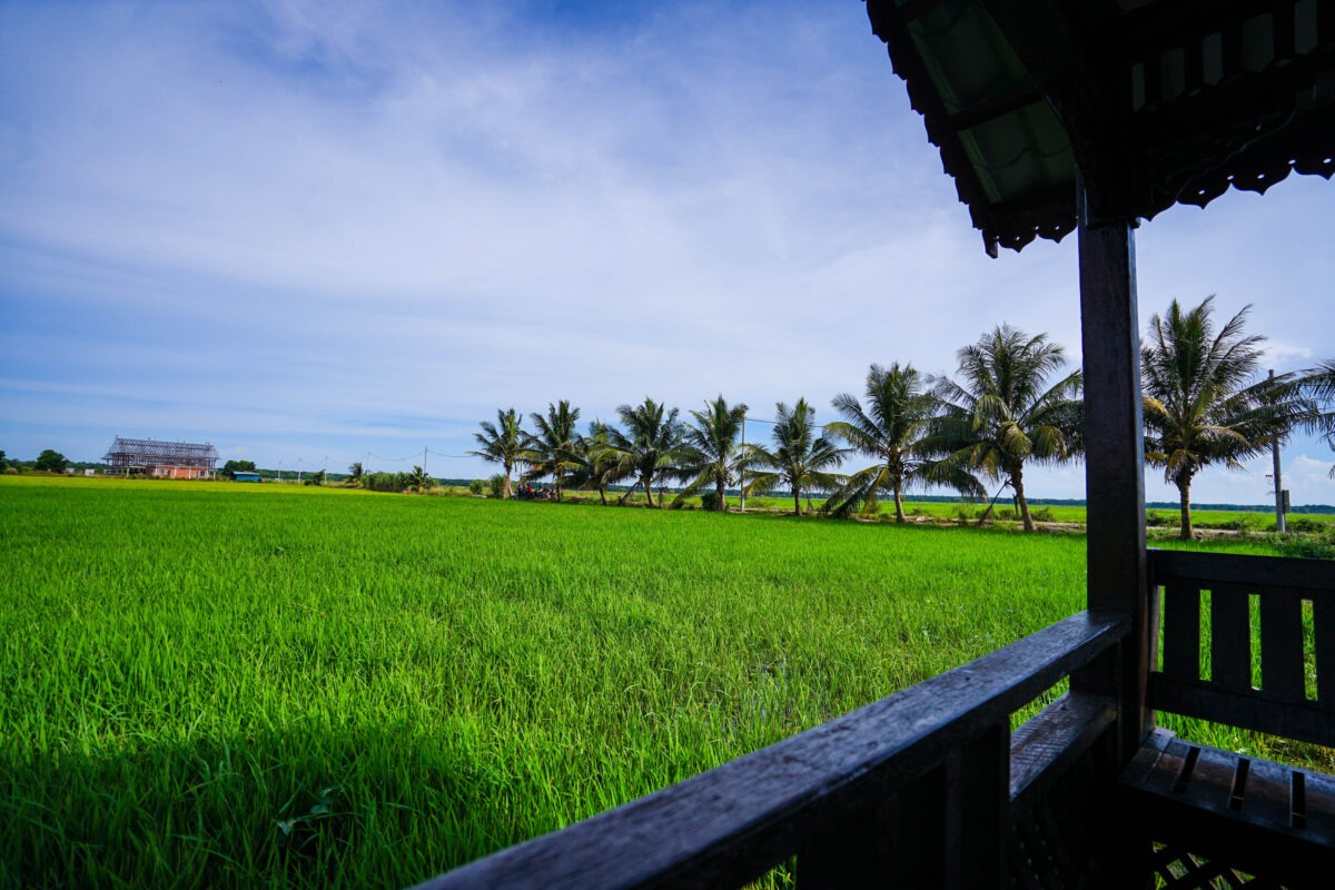 A peaceful village stay surrounded by endless rice fields.